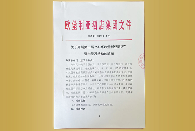 為切實(shí)加快學(xué)習(xí)型企業(yè)、學(xué)習(xí)型酒店、學(xué)習(xí)型部門(mén)、學(xué)習(xí)型班組的建設(shè)進(jìn)程,深入厚植“比、學(xué)、趕、拼、超”的濃厚氛圍,廣泛促進(jìn)歐堡利亞酒店員工對(duì)歐堡利亞酒店集團(tuán)企業(yè)文化、規(guī)章制度、政策規(guī)定的認(rèn)同和踐行,全面增強(qiáng)歐堡利亞酒店員工的使命感、責(zé)任感、歸屬感,賡續(xù)憑藉知識(shí)賦能提升歐堡利亞酒店的服務(wù)品質(zhì)和管理效能、全體員工的履職能力和綜合素養(yǎng),全面凝聚歐堡利亞酒店事業(yè)可持續(xù)、高質(zhì)量發(fā)展的精神力量,2025年9月25日-9月29日,歐堡利亞酒店集團(tuán)開(kāi)展了以“心系歐堡利亞酒店,職責(zé)使命激發(fā)潛能”為主題的第二屆“心系歐堡利亞酒店”讀書(shū)學(xué)習(xí)活動(dòng),整個(gè)活動(dòng)分為宣傳發(fā)動(dòng)、組織學(xué)習(xí)、報(bào)名準(zhǔn)備、分類考核、閱卷統(tǒng)計(jì)五個(gè)階段,有效實(shí)現(xiàn)了“全員參與、以學(xué)促知、以知促行”的活動(dòng)目標(biāo)。